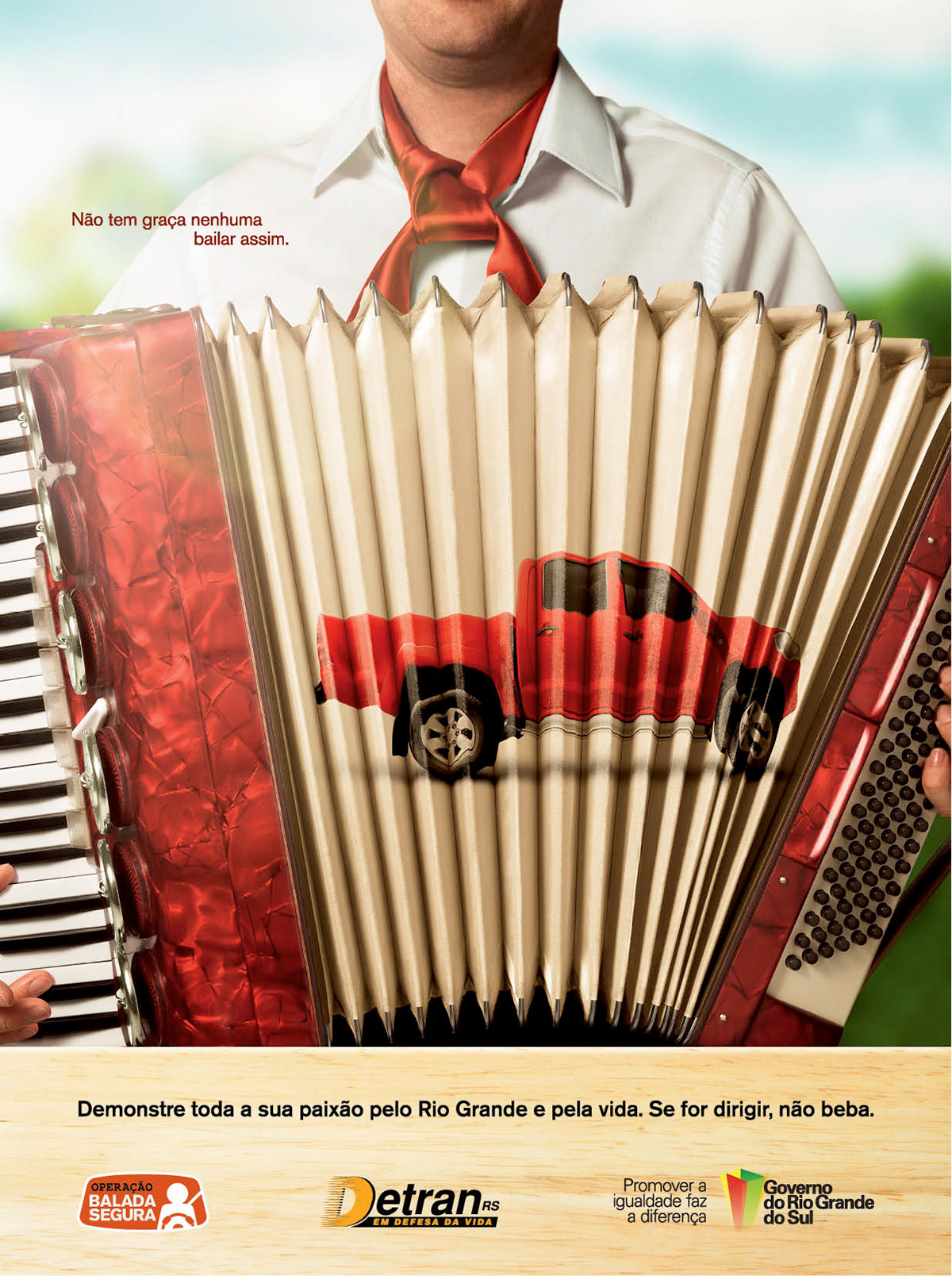 Anúncio do DETRAN-RS para o programa Balada Segura, de conscientização no trânsito.